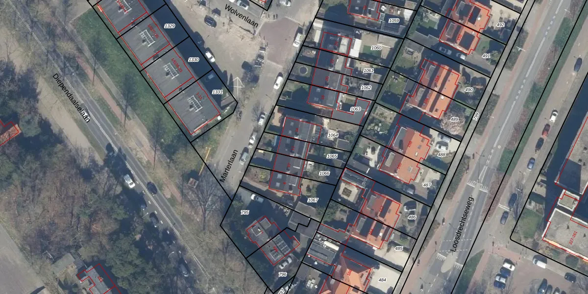 Marterlaan 12 is gelegen op kadastraal perceel HVS00O1065. Deze kadastrale aanduiding is uniek en wordt gebruikt door het Kadaster om eigendomsrechten en andere zakelijke rechten vast te leggen. Het perceel maakt onderdeel uit van de kadastrale gemeente Hilversum.