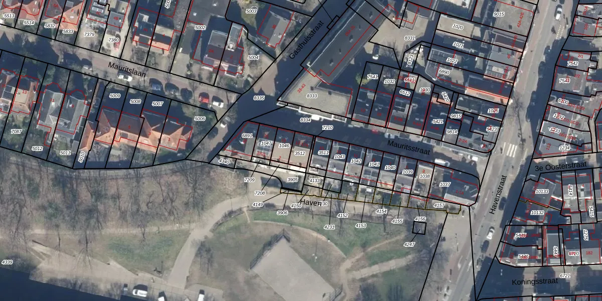 Het perceel waarop Mauritsstraat 17 staat heeft een oppervlakte van 69 m². Dit is een klein perceel. De perceeloppervlakte wordt geregistreerd door het Kadaster. Gedetailleerde informatie over de maten van dit perceel kunt u vinden in het rapport Kadastrale kaart met maatvoering van Mauritsstraat 17.