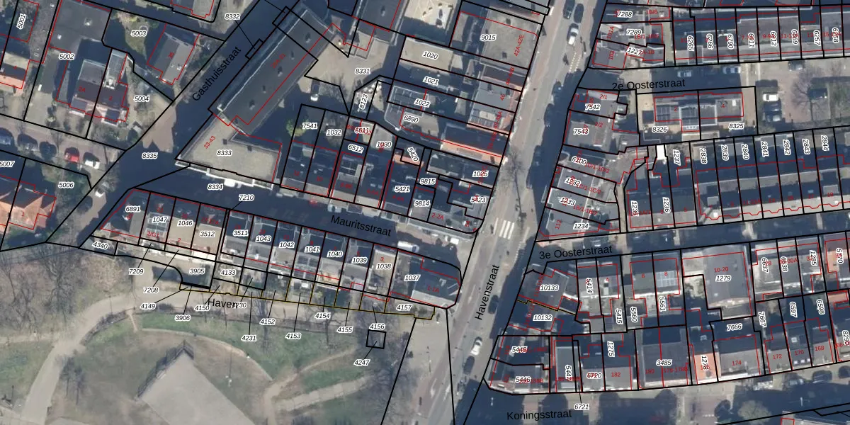 Het perceel waarop Mauritsstraat 2-A staat heeft een oppervlakte van 39 m². Dit is een klein perceel. De perceeloppervlakte wordt geregistreerd door het Kadaster. Gedetailleerde informatie over de maten van dit perceel kunt u vinden in het rapport Kadastrale kaart met maatvoering van Mauritsstraat 2-A.