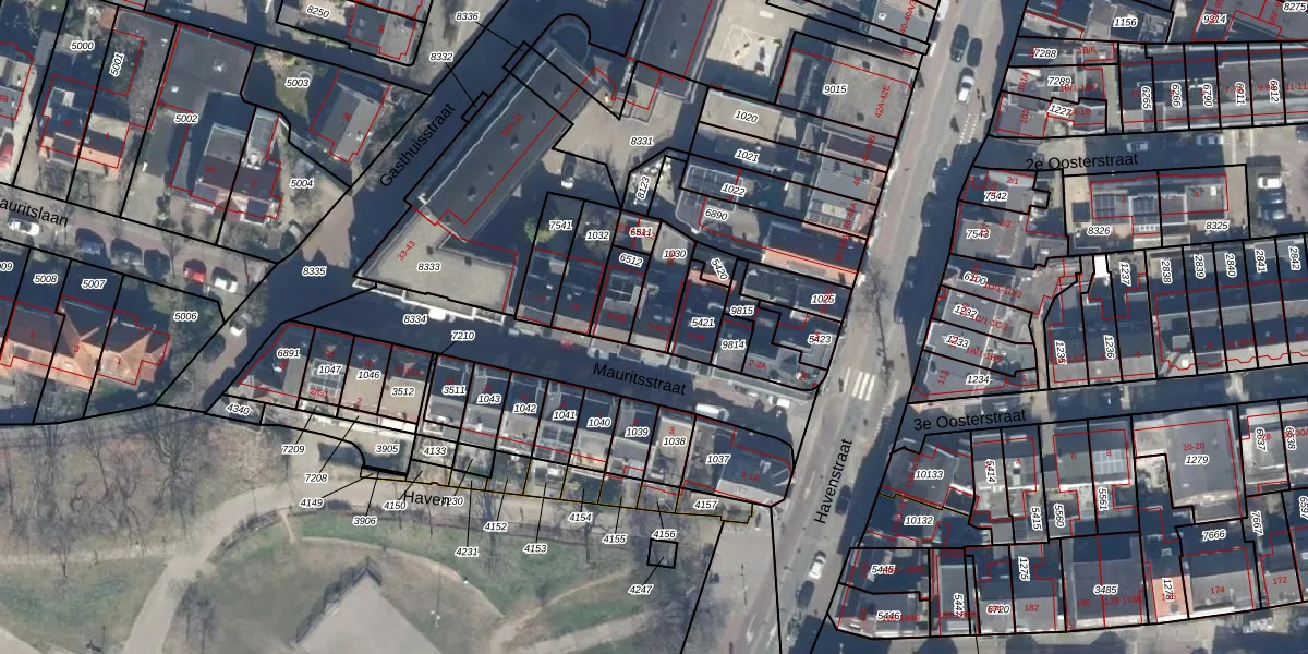 Het perceel waarop Mauritsstraat 6 staat heeft een oppervlakte van 115 m². Dit is een middelgroot perceel. De perceeloppervlakte wordt geregistreerd door het Kadaster. Gedetailleerde informatie over de maten van dit perceel kunt u vinden in het rapport Kadastrale kaart met maatvoering van Mauritsstraat 6.