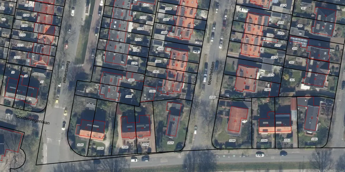 Moerbeilaan 84 is gelegen op kadastraal perceel HVS00L1962. Deze kadastrale aanduiding is uniek en wordt gebruikt door het Kadaster om eigendomsrechten en andere zakelijke rechten vast te leggen. Het perceel maakt onderdeel uit van de kadastrale gemeente Hilversum.