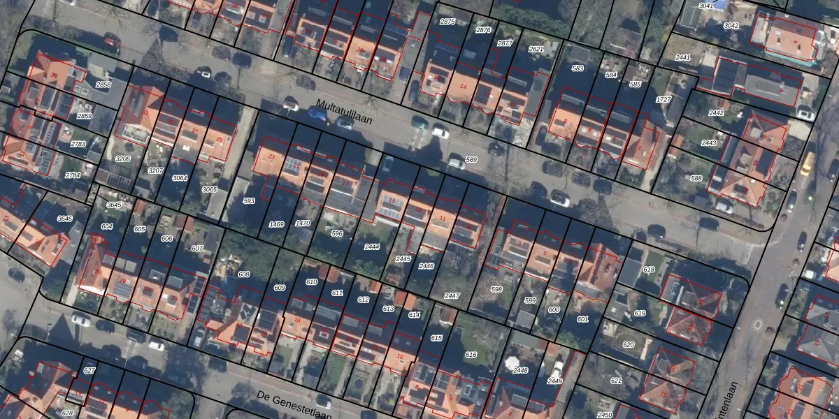 Het perceel waarop Multatulilaan 13 staat heeft een oppervlakte van 180 m². Dit is een middelgroot perceel. De perceeloppervlakte wordt geregistreerd door het Kadaster. Gedetailleerde informatie over de maten van dit perceel kunt u vinden in het rapport Kadastrale kaart met maatvoering van Multatulilaan 13.