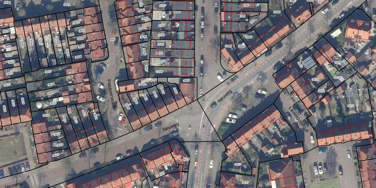 Neuweg 196 is gelegen op kadastraal perceel HVS00L3655. Deze kadastrale aanduiding is uniek en wordt gebruikt door het Kadaster om eigendomsrechten en andere zakelijke rechten vast te leggen. Het perceel maakt onderdeel uit van de kadastrale gemeente Hilversum.