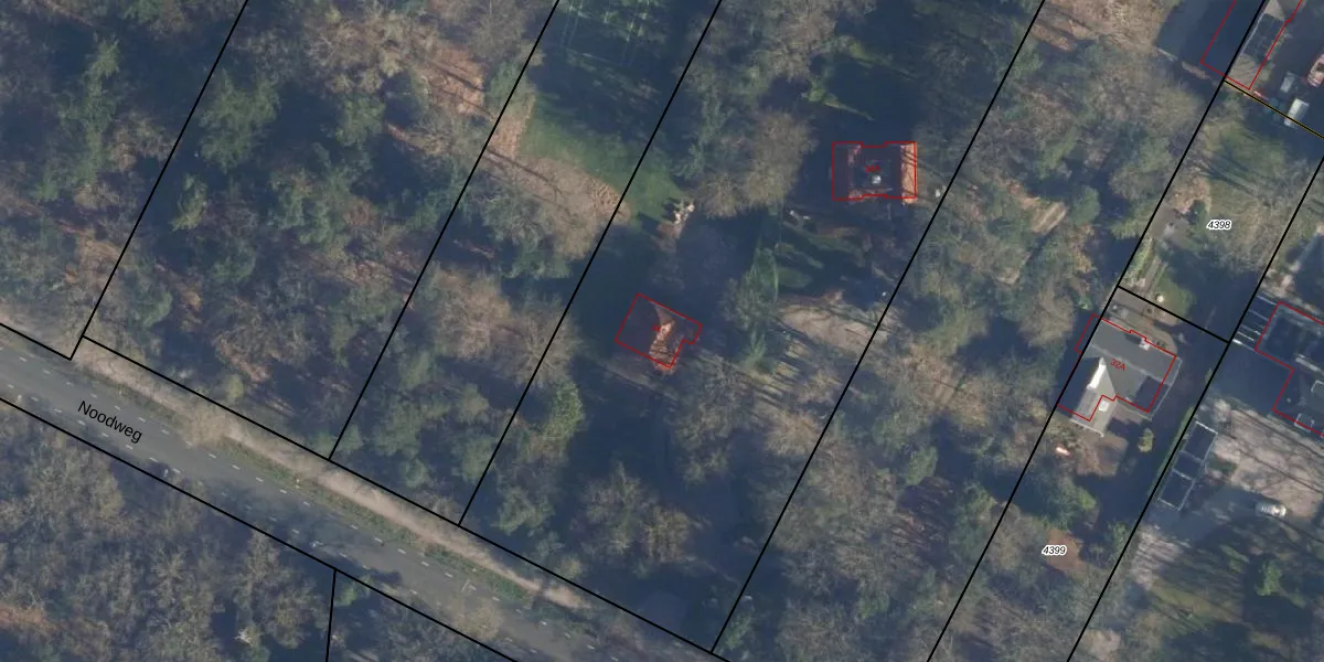Het perceel waarop Noodweg 34 staat heeft een oppervlakte van 1,2 ha. Dit is een zeer groot perceel. De perceeloppervlakte wordt geregistreerd door het Kadaster. Gedetailleerde informatie over de maten van dit perceel kunt u vinden in het rapport Kadastrale kaart met maatvoering van Noodweg 34.