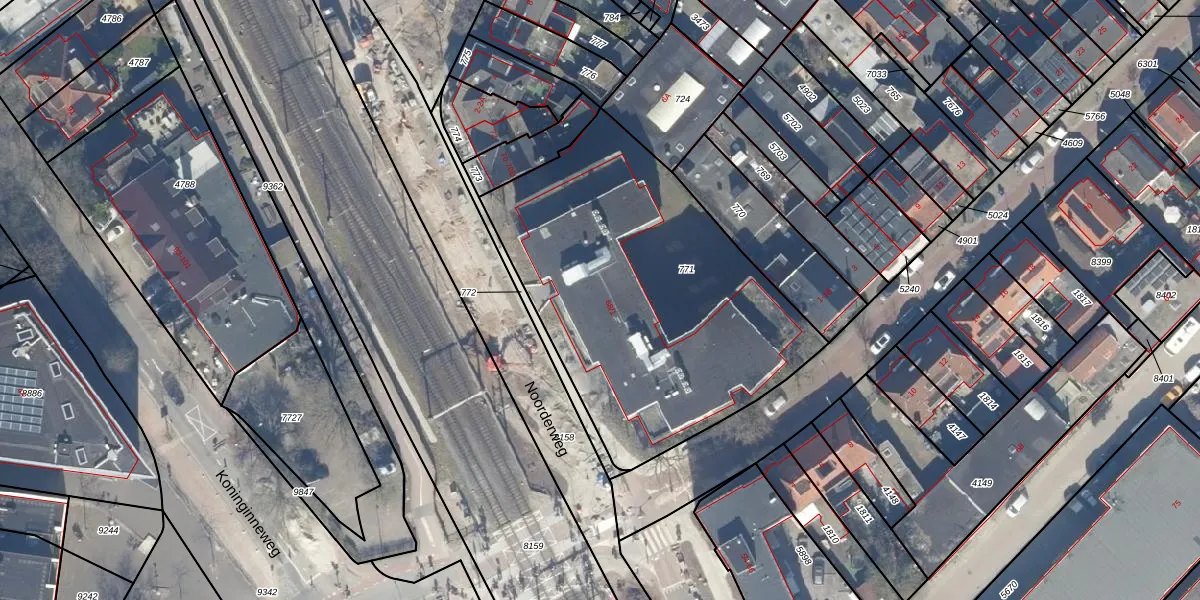 Noorderweg 68-1 is gelegen op kadastraal perceel HVS00R771. Deze kadastrale aanduiding is uniek en wordt gebruikt door het Kadaster om eigendomsrechten en andere zakelijke rechten vast te leggen. Het perceel maakt onderdeel uit van de kadastrale gemeente Hilversum.