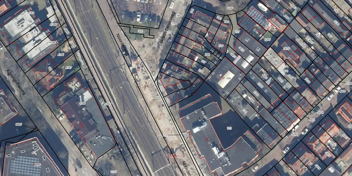 Noorderweg 72 is gelegen op kadastraal perceel HVS00R774. Deze kadastrale aanduiding is uniek en wordt gebruikt door het Kadaster om eigendomsrechten en andere zakelijke rechten vast te leggen. Het perceel maakt onderdeel uit van de kadastrale gemeente Hilversum.