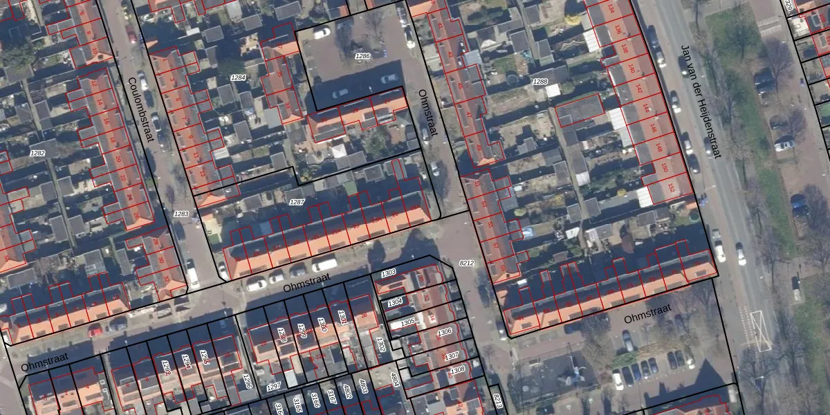 Het perceel waarop Ohmstraat 25-A staat heeft een oppervlakte van 1065 m². Dit is een zeer groot perceel. De perceeloppervlakte wordt geregistreerd door het Kadaster. Gedetailleerde informatie over de maten van dit perceel kunt u vinden in het rapport Kadastrale kaart met maatvoering van Ohmstraat 25-A.
