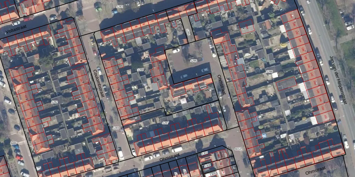 Het perceel waarop Ohmstraat 31 staat heeft een oppervlakte van 2475 m². Dit is een zeer groot perceel. De perceeloppervlakte wordt geregistreerd door het Kadaster. Gedetailleerde informatie over de maten van dit perceel kunt u vinden in het rapport Kadastrale kaart met maatvoering van Ohmstraat 31.