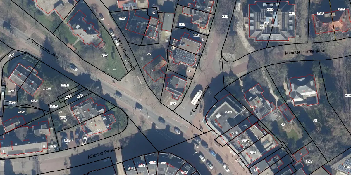 Oude Enghweg 1 is gelegen op kadastraal perceel HVS00N5820. Deze kadastrale aanduiding is uniek en wordt gebruikt door het Kadaster om eigendomsrechten en andere zakelijke rechten vast te leggen. Het perceel maakt onderdeel uit van de kadastrale gemeente Hilversum.