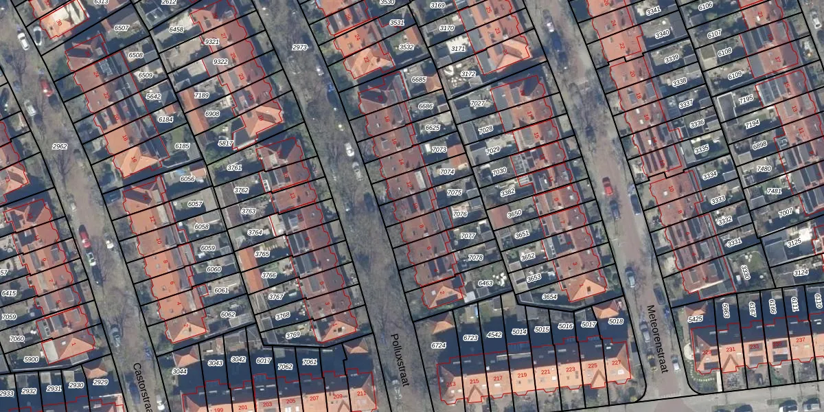 Het perceel waarop Polluxstraat 10 staat heeft een oppervlakte van 134 m². Dit is een middelgroot perceel. De perceeloppervlakte wordt geregistreerd door het Kadaster. Gedetailleerde informatie over de maten van dit perceel kunt u vinden in het rapport Kadastrale kaart met maatvoering van Polluxstraat 10.
