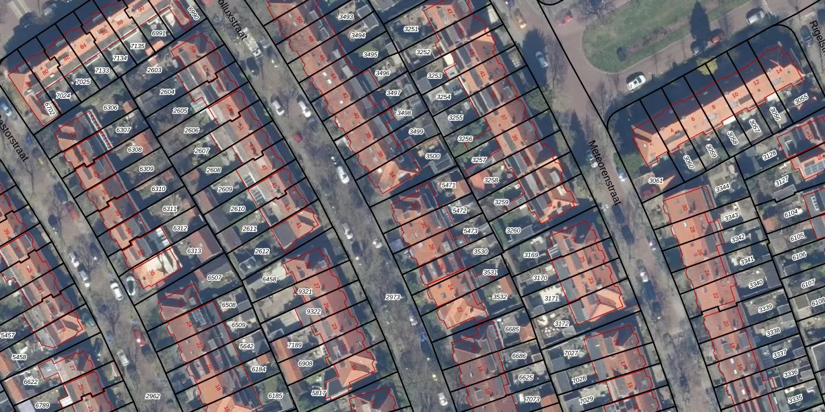 Het perceel waarop Polluxstraat 32 staat heeft een oppervlakte van 182 m². Dit is een middelgroot perceel. De perceeloppervlakte wordt geregistreerd door het Kadaster. Gedetailleerde informatie over de maten van dit perceel kunt u vinden in het rapport Kadastrale kaart met maatvoering van Polluxstraat 32.