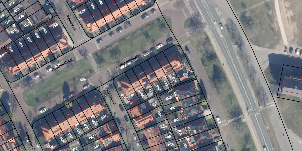 Gebruik de zoekbalk of klik op een perceel voor informatie over de adressen binnen dit perceel.