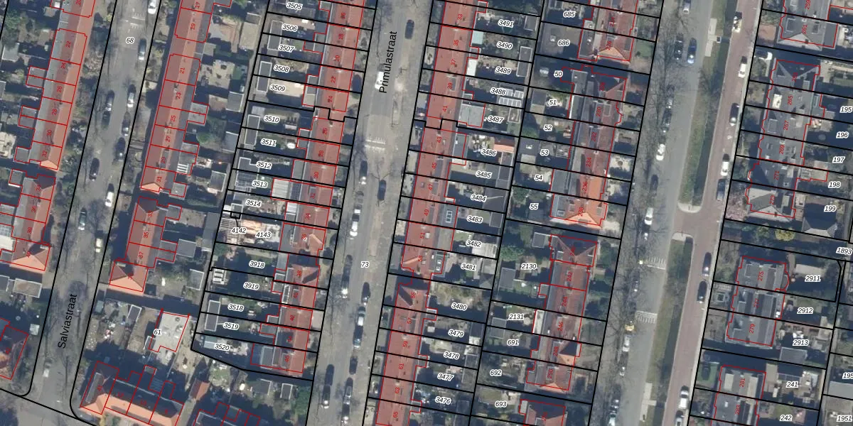 Primulastraat 49 is gelegen op kadastraal perceel HVS00L3483. Deze kadastrale aanduiding is uniek en wordt gebruikt door het Kadaster om eigendomsrechten en andere zakelijke rechten vast te leggen. Het perceel maakt onderdeel uit van de kadastrale gemeente Hilversum.