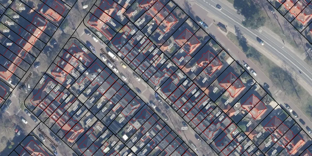 Het perceel waarop Rigelstraat 112 staat heeft een oppervlakte van 185 m². Dit is een middelgroot perceel. De perceeloppervlakte wordt geregistreerd door het Kadaster. Gedetailleerde informatie over de maten van dit perceel kunt u vinden in het rapport Kadastrale kaart met maatvoering van Rigelstraat 112.