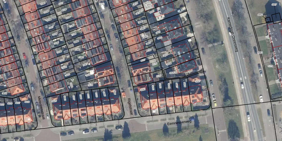 Gebruik de zoekbalk of klik op een perceel voor informatie over de adressen binnen dit perceel.