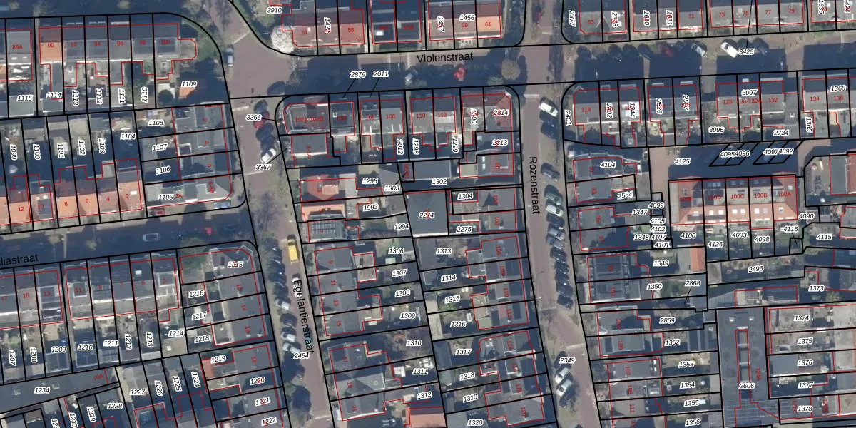 Gebruik de zoekbalk of klik op een perceel voor informatie over de adressen binnen dit perceel.