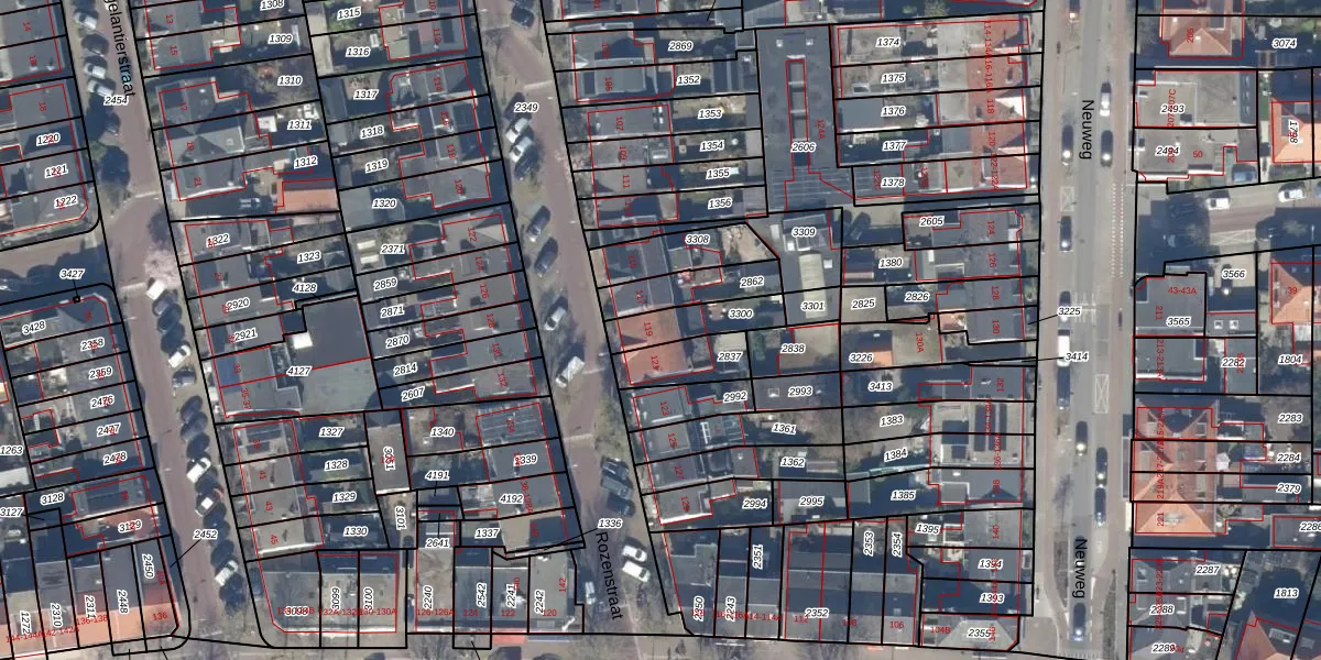Gebruik de zoekbalk of klik op een perceel voor informatie over de adressen binnen dit perceel.