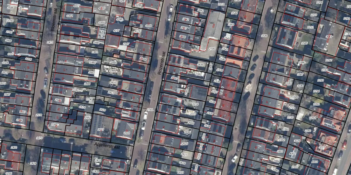 Het perceel waarop Rozenstraat 33 staat heeft een oppervlakte van 197 m². Dit is een middelgroot perceel. De perceeloppervlakte wordt geregistreerd door het Kadaster. Gedetailleerde informatie over de maten van dit perceel kunt u vinden in het rapport Kadastrale kaart met maatvoering van Rozenstraat 33.
