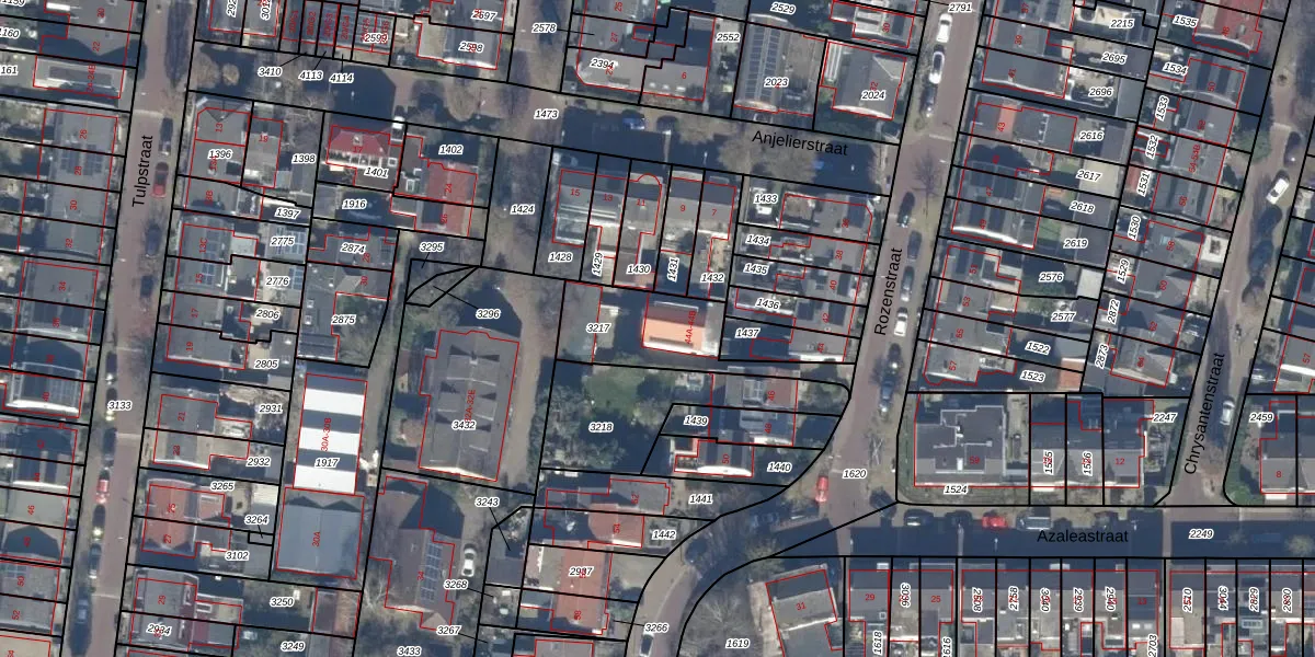 Het perceel waarop Rozenstraat 44-B staat heeft een oppervlakte van 322 m². Dit is een groot perceel. De perceeloppervlakte wordt geregistreerd door het Kadaster. Gedetailleerde informatie over de maten van dit perceel kunt u vinden in het rapport Kadastrale kaart met maatvoering van Rozenstraat 44-B.