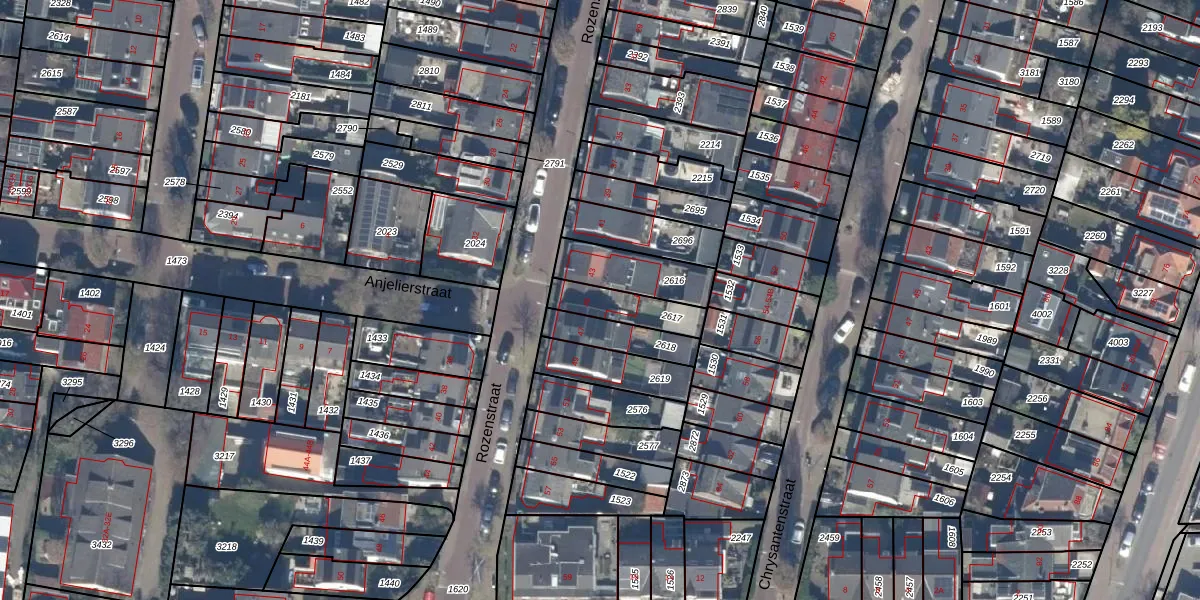 Het perceel waarop Rozenstraat 45 staat heeft een oppervlakte van 133 m². Dit is een middelgroot perceel. De perceeloppervlakte wordt geregistreerd door het Kadaster. Gedetailleerde informatie over de maten van dit perceel kunt u vinden in het rapport Kadastrale kaart met maatvoering van Rozenstraat 45.