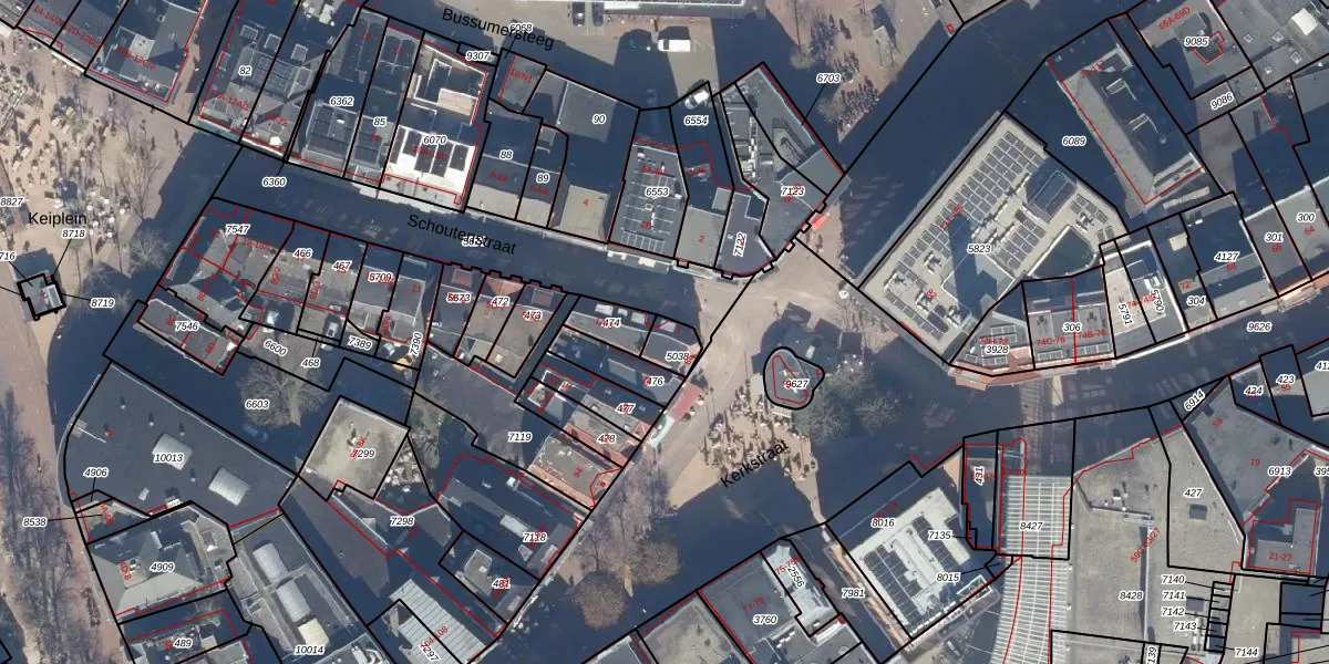 Schoutenstraat 1 is gelegen op kadastraal perceel HVS00N5038. Deze kadastrale aanduiding is uniek en wordt gebruikt door het Kadaster om eigendomsrechten en andere zakelijke rechten vast te leggen. Het perceel maakt onderdeel uit van de kadastrale gemeente Hilversum.