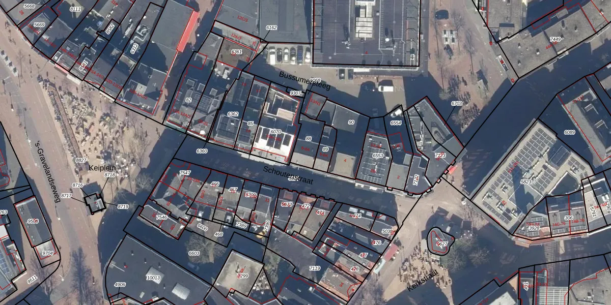 Schoutenstraat 8-A is gelegen op kadastraal perceel HVS00N88. Deze kadastrale aanduiding is uniek en wordt gebruikt door het Kadaster om eigendomsrechten en andere zakelijke rechten vast te leggen. Het perceel maakt onderdeel uit van de kadastrale gemeente Hilversum.