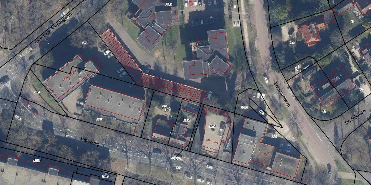 Het perceel waarop Schuttersweg 1-G4 staat heeft een oppervlakte van 6480 m². Dit is een zeer groot perceel. De perceeloppervlakte wordt geregistreerd door het Kadaster. Gedetailleerde informatie over de maten van dit perceel kunt u vinden in het rapport Kadastrale kaart met maatvoering van Schuttersweg 1-G4.
