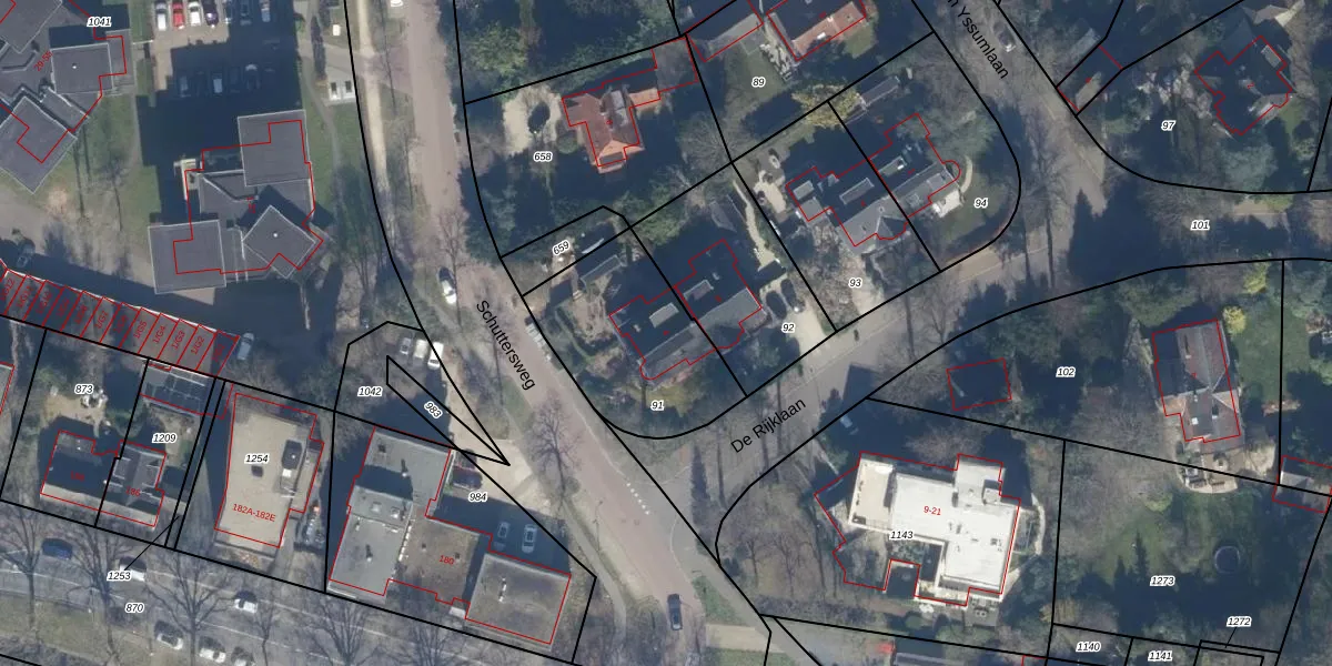 Het perceel waarop Schuttersweg 4 staat heeft een oppervlakte van 597 m². Dit is een groot perceel. De perceeloppervlakte wordt geregistreerd door het Kadaster. Gedetailleerde informatie over de maten van dit perceel kunt u vinden in het rapport Kadastrale kaart met maatvoering van Schuttersweg 4.