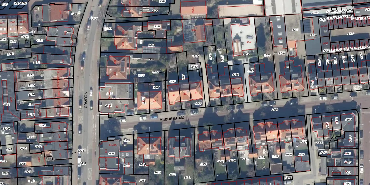 Het perceel waarop Silenestraat 42 staat heeft een oppervlakte van 180 m². Dit is een middelgroot perceel. De perceeloppervlakte wordt geregistreerd door het Kadaster. Gedetailleerde informatie over de maten van dit perceel kunt u vinden in het rapport Kadastrale kaart met maatvoering van Silenestraat 42.