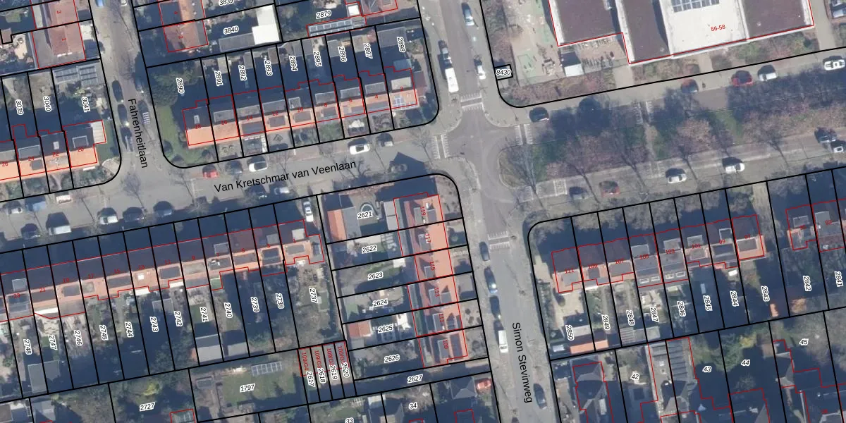 Gebruik de zoekbalk of klik op een perceel voor informatie over de adressen binnen dit perceel.