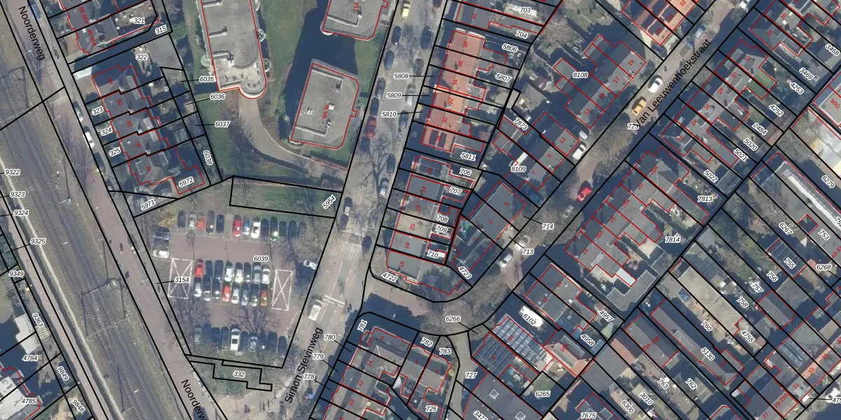Gebruik de zoekbalk of klik op een perceel voor informatie over de adressen binnen dit perceel.