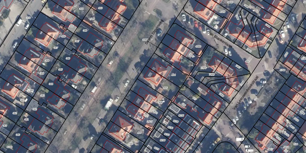 Gebruik de zoekbalk of klik op een perceel voor informatie over de adressen binnen dit perceel.
