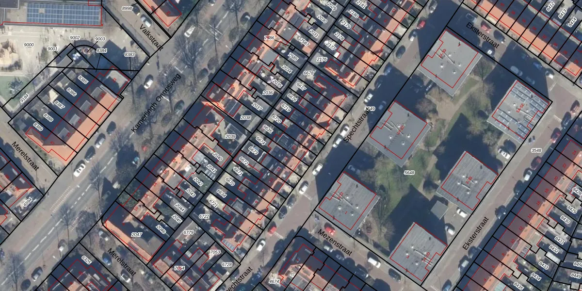 Gebruik de zoekbalk of klik op een perceel voor informatie over de adressen binnen dit perceel.