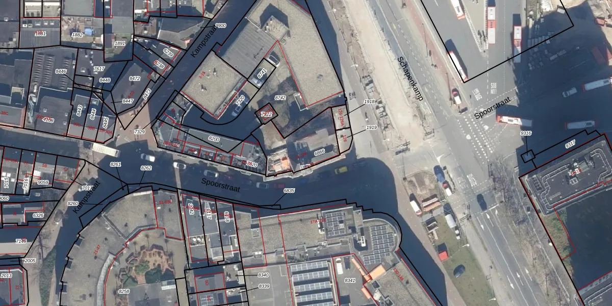 Het perceel waarop Spoorstraat 16-C staat heeft een oppervlakte van 363 m². Dit is een groot perceel. De perceeloppervlakte wordt geregistreerd door het Kadaster. Gedetailleerde informatie over de maten van dit perceel kunt u vinden in het rapport Kadastrale kaart met maatvoering van Spoorstraat 16-C.