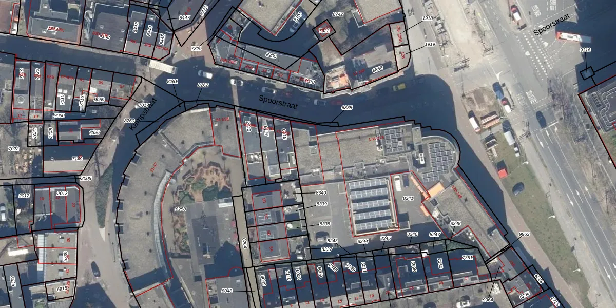 Spoorstraat 21-E is gelegen op kadastraal perceel HVS00N8341. Deze kadastrale aanduiding is uniek en wordt gebruikt door het Kadaster om eigendomsrechten en andere zakelijke rechten vast te leggen. Het perceel maakt onderdeel uit van de kadastrale gemeente Hilversum.