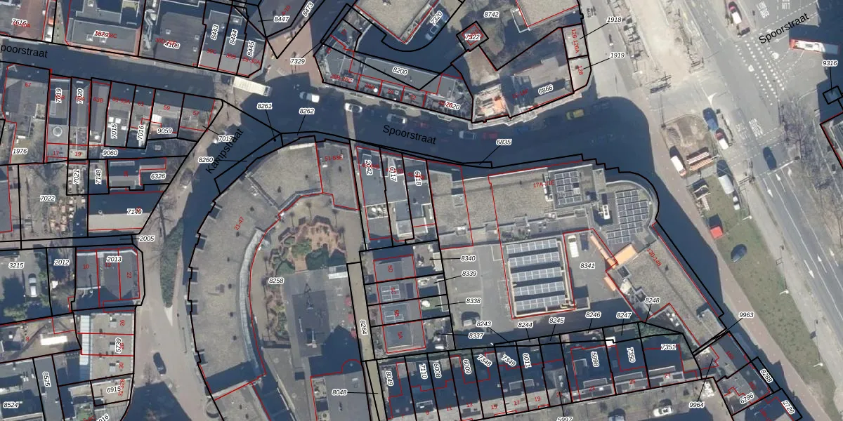 Spoorstraat 45-B is gelegen op kadastraal perceel HVS00N6118. Deze kadastrale aanduiding is uniek en wordt gebruikt door het Kadaster om eigendomsrechten en andere zakelijke rechten vast te leggen. Het perceel maakt onderdeel uit van de kadastrale gemeente Hilversum.