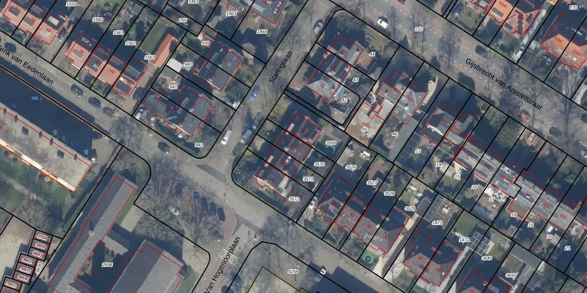 Het perceel waarop Staringlaan 37 staat heeft een oppervlakte van 178 m². Dit is een middelgroot perceel. De perceeloppervlakte wordt geregistreerd door het Kadaster. Gedetailleerde informatie over de maten van dit perceel kunt u vinden in het rapport Kadastrale kaart met maatvoering van Staringlaan 37.