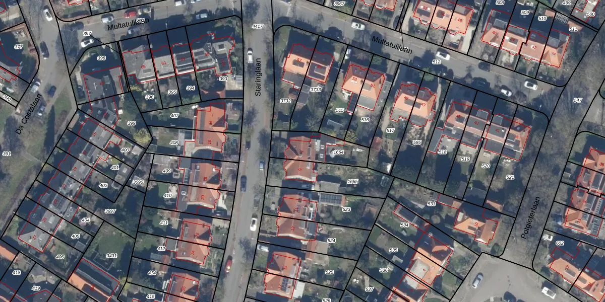 Het perceel waarop Staringlaan 7 staat heeft een oppervlakte van 285 m². Dit is een middelgroot perceel. De perceeloppervlakte wordt geregistreerd door het Kadaster. Gedetailleerde informatie over de maten van dit perceel kunt u vinden in het rapport Kadastrale kaart met maatvoering van Staringlaan 7.