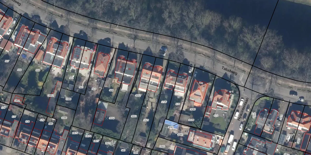 Het perceel waarop Taludweg 61 staat heeft een oppervlakte van 524 m². Dit is een groot perceel. De perceeloppervlakte wordt geregistreerd door het Kadaster. Gedetailleerde informatie over de maten van dit perceel kunt u vinden in het rapport Kadastrale kaart met maatvoering van Taludweg 61.