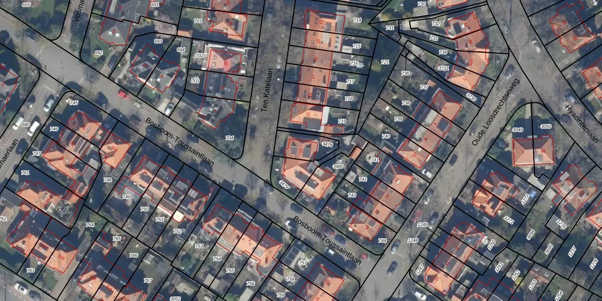 Het perceel waarop Ten Katelaan 23 staat heeft een oppervlakte van 170 m². Dit is een middelgroot perceel. De perceeloppervlakte wordt geregistreerd door het Kadaster. Gedetailleerde informatie over de maten van dit perceel kunt u vinden in het rapport Kadastrale kaart met maatvoering van Ten Katelaan 23.