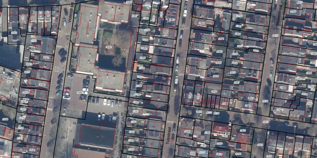 Gebruik de zoekbalk of klik op een perceel voor informatie over de adressen binnen dit perceel.