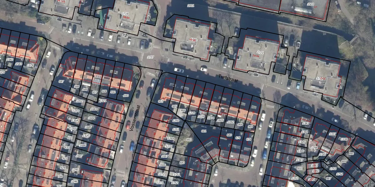 Gebruik de zoekbalk of klik op een perceel voor informatie over de adressen binnen dit perceel.
