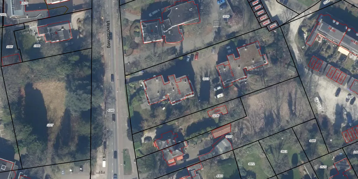 Het perceel waarop Utrechtseweg 13-10 staat heeft een oppervlakte van 3013 m². Dit is een zeer groot perceel. De perceeloppervlakte wordt geregistreerd door het Kadaster. Gedetailleerde informatie over de maten van dit perceel kunt u vinden in het rapport Kadastrale kaart met maatvoering van Utrechtseweg 13-10.