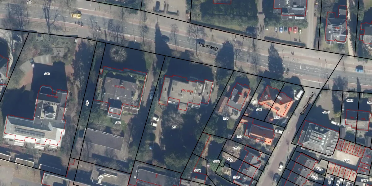 Vaartweg 85-9 is gelegen op kadastraal perceel HVS00P233. Deze kadastrale aanduiding is uniek en wordt gebruikt door het Kadaster om eigendomsrechten en andere zakelijke rechten vast te leggen. Het perceel maakt onderdeel uit van de kadastrale gemeente Hilversum.