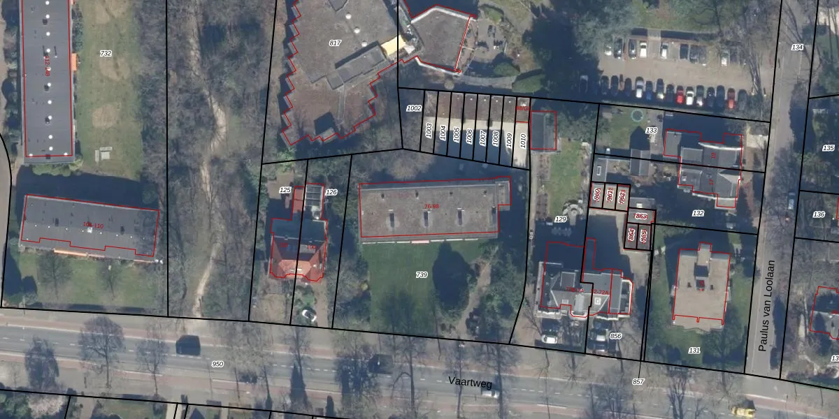 Het perceel waarop Vaartweg 96 staat heeft een oppervlakte van 1890 m². Dit is een zeer groot perceel. De perceeloppervlakte wordt geregistreerd door het Kadaster. Gedetailleerde informatie over de maten van dit perceel kunt u vinden in het rapport Kadastrale kaart met maatvoering van Vaartweg 96.