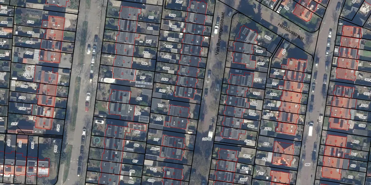 Het perceel waarop Van Beuningenstraat 18 staat heeft een oppervlakte van 222 m². Dit is een middelgroot perceel. De perceeloppervlakte wordt geregistreerd door het Kadaster. Gedetailleerde informatie over de maten van dit perceel kunt u vinden in het rapport Kadastrale kaart met maatvoering van Van Beuningenstraat 18.