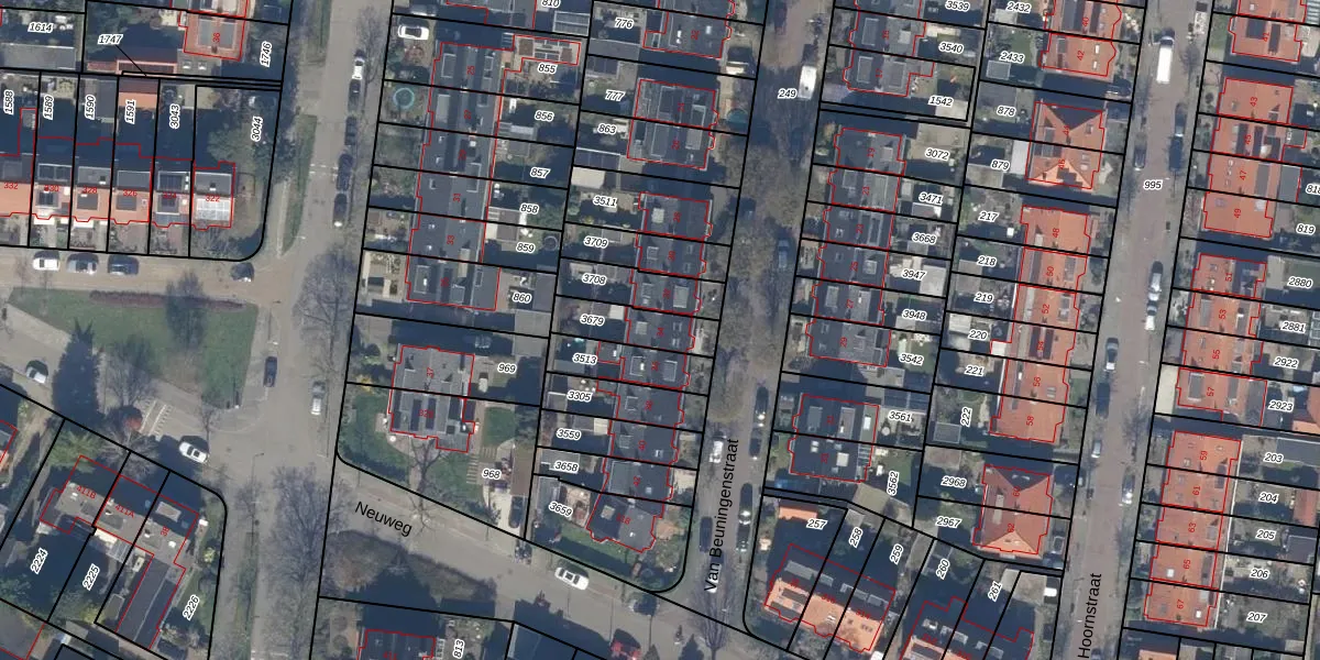 Het perceel waarop Van Beuningenstraat 34 staat heeft een oppervlakte van 148 m². Dit is een middelgroot perceel. De perceeloppervlakte wordt geregistreerd door het Kadaster. Gedetailleerde informatie over de maten van dit perceel kunt u vinden in het rapport Kadastrale kaart met maatvoering van Van Beuningenstraat 34.