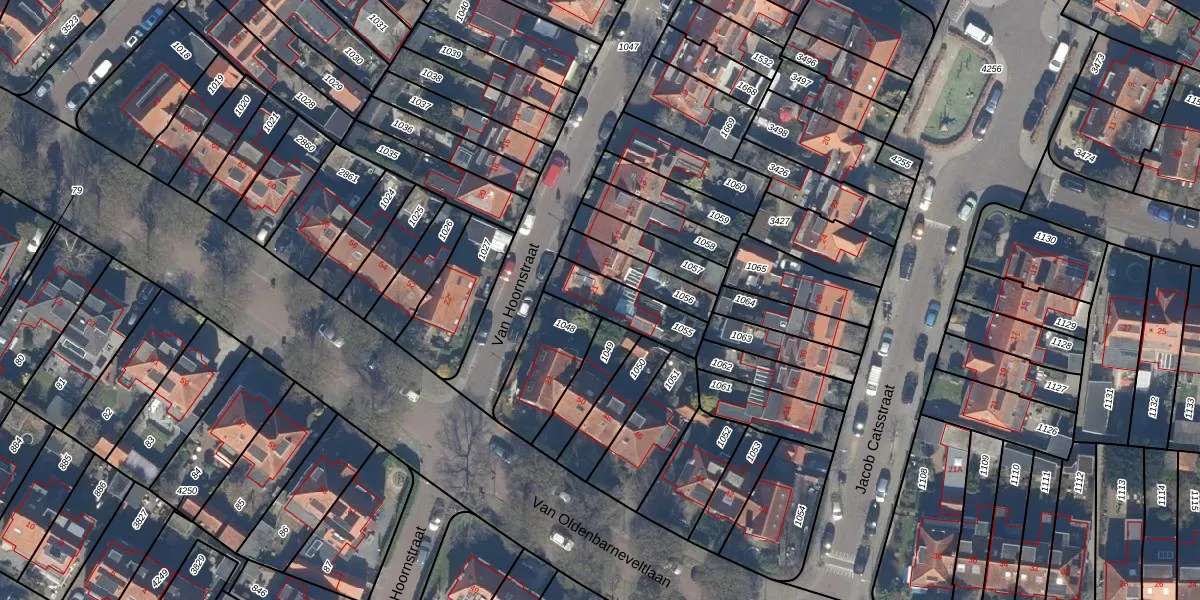 Van Hoornstraat 21 is gelegen op kadastraal perceel HVS00M1055. Deze kadastrale aanduiding is uniek en wordt gebruikt door het Kadaster om eigendomsrechten en andere zakelijke rechten vast te leggen. Het perceel maakt onderdeel uit van de kadastrale gemeente Hilversum.