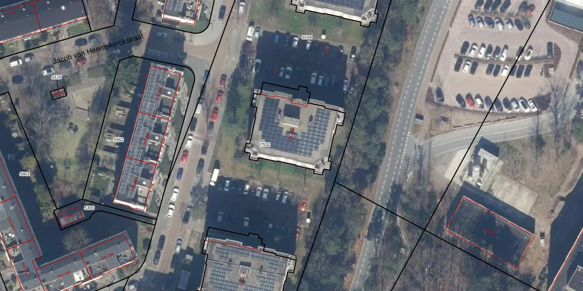 Het perceel waarop het adres ligt is HVS00-C-7532. De afkorting 'HVS00' staat voor kadastrale gemeente Hilversum. Het perceel is kleiner dan gemiddeld in Hilversum. Het perceel is 705 m² groot, terwijl het gemiddelde ligt op 1394,51 m². De grootste perceeloppervlakte in de kadastrale gemeente is 91,7 ha. De kleinste oppervlakte bedraagt 0 m². Op het perceel zijn 36 adressen aanwezig. In de Basisregistratie Kadaster (BRK) werden de grenzen van het perceel geregistreerd op 06-04-2004.