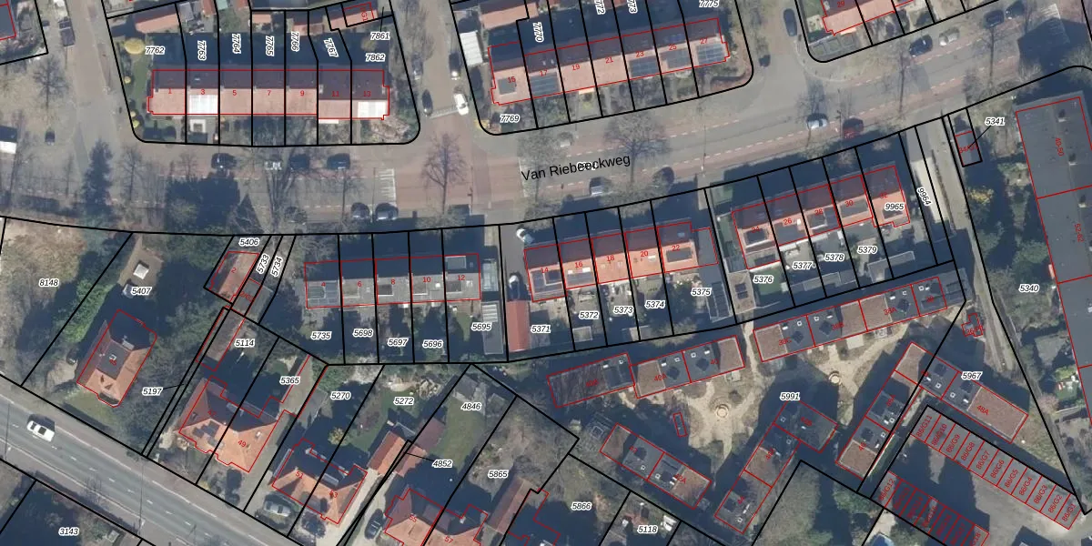Gebruik de zoekbalk of klik op een perceel voor informatie over de adressen binnen dit perceel.